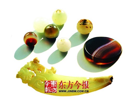 出土物中精美的水晶、玛瑙