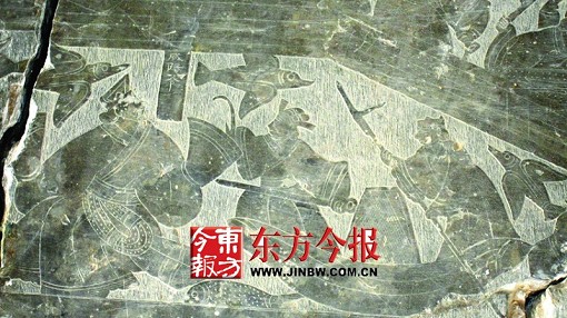 除上述器物外,该墓还出土有大量画像石残块。这批画像石画工精细娴熟,雕刻精美,内容丰富,有“神兽”、“七女复仇”等图案,并刻有“主薄车”、“咸阳令”、“纪梁”、“侍郎”、“宋王车”、“文王十子”、“饮酒人”等文字,堪称汉画像石中不可多得的精品。