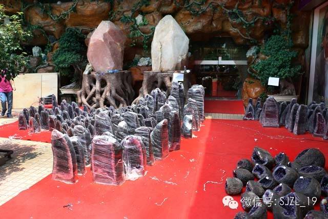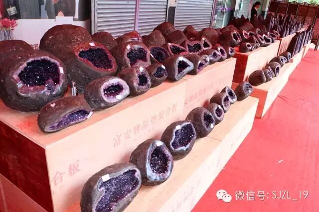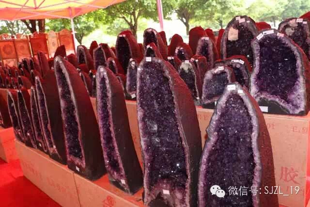 展销节现场,琳琅满布的紫晶洞、聚宝盆