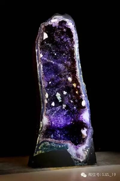 巴西紫晶洞洞形正,璧薄空间大,晶体颜色鲜艳,藏风纳气。晶洞修长挺拔,象征顶天立地,稳健如山。洞口犹如一圈铜牙利齿,气势凶猛,招财辟邪俱佳。