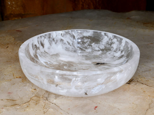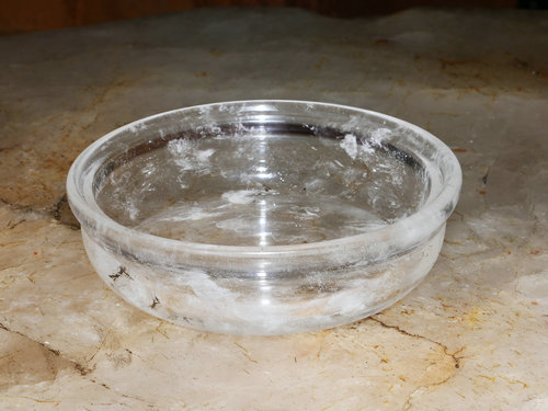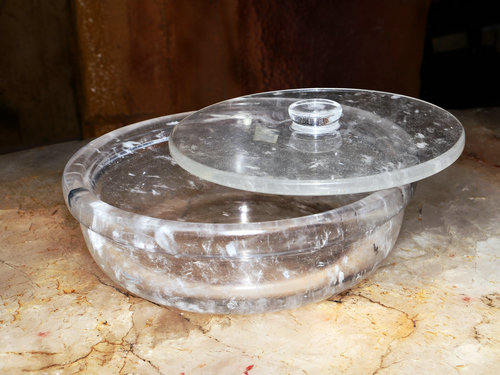 您也许不知道,在制作熔炼水晶前对天然水晶原料的挑选要求为二氧化硅的纯度高,杂质含量少,具有较高的透明度的水晶晶体或碎块,其中不允许含有矿物包裹体,表面不允许粘附矿物和杂质,或带有紫色、黄色,晶体最小厚度应大于3毫米。然后再将精选过得原料在高温高压的熔炉中使其融化,再压制成一定形状的原料半成品,最后经师傅们的加工打磨抛光成各种形状的器皿餐具并经过严格的检测,合格才能出品。