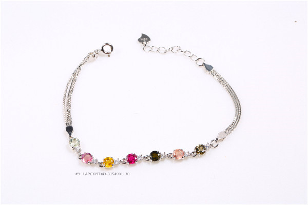 銀鍍白金碧璽鑲嵌手鏈