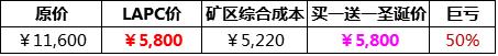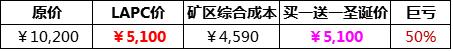 Ⅰ买一送一再加送20%(自有矿区买1000送1000,买10000送10000;合作矿区买1000送1200,买10000送12000),巨亏50%以上;