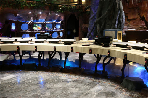 世外桃源里的花红柳绿、群山如画包围着整个水晶餐厅,小桥流水温养着轻烟袅袅,缔造人间仙境。