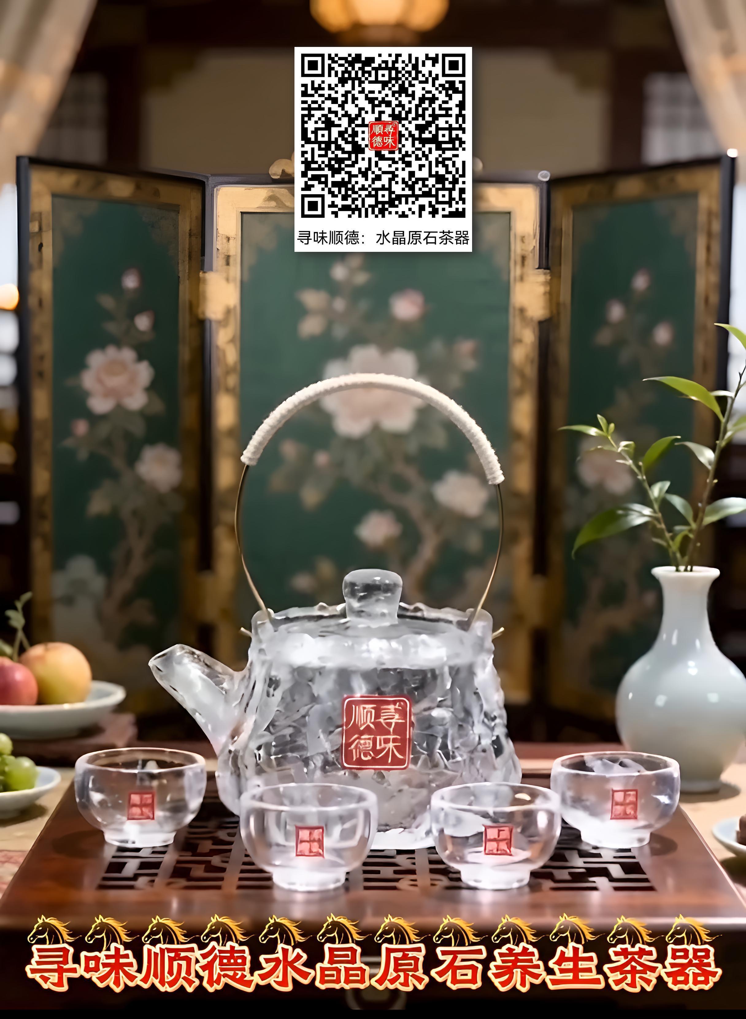 第三,新闻视角下的“实用主义美学”评述。 在当下的茶器市场,行业普遍存在“重艺术轻实用”的倾向。而这组画面及影片的新闻价值在于,它敏锐地捕捉到了消费回归理性的趋势。 画面中没有刻意回避水晶原石的非完美肌理,反而通过微距特写强调其天然的冰裂与内含物,这恰是“实用性”的视觉隐喻——真正的养生源自自然,而非工业流水线的完美抛光。通过AI古风影片的渲染,将坚硬的晶体质感与柔和的茶汤气息相融合,打破了“水晶只适合做首饰”的刻板印象,确立了其在茶道实用器皿中的独特品类地位。