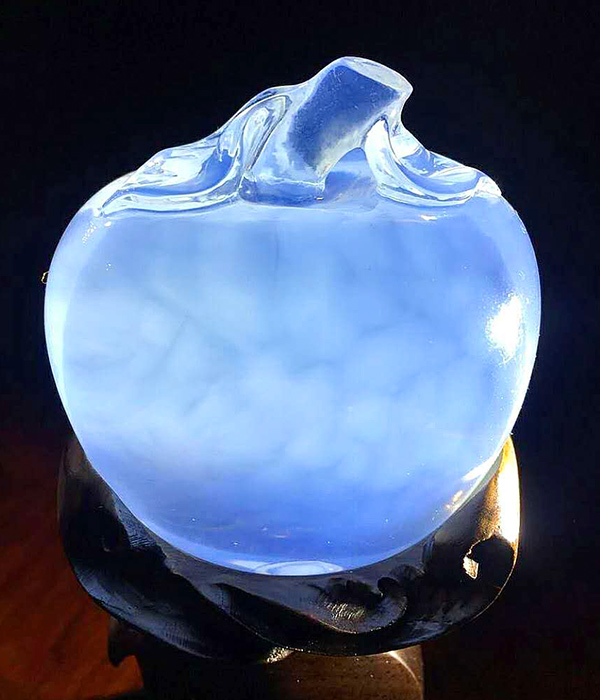 - 极端罕见!天然冰种粉晶蓝色星光宝矿料定制的苹果,仿似天外之物!